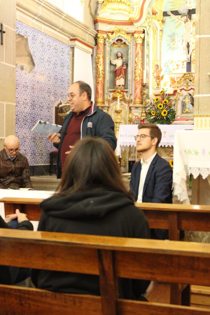 👉 A tarde foi marcada pela Eucaristia presidida pelo Pe. Joaquim Félix, seguida de um momento de partilha e reflexão, centrado na simbologia da nova porta da igreja paroquial, tema em destaque neste número da revista.